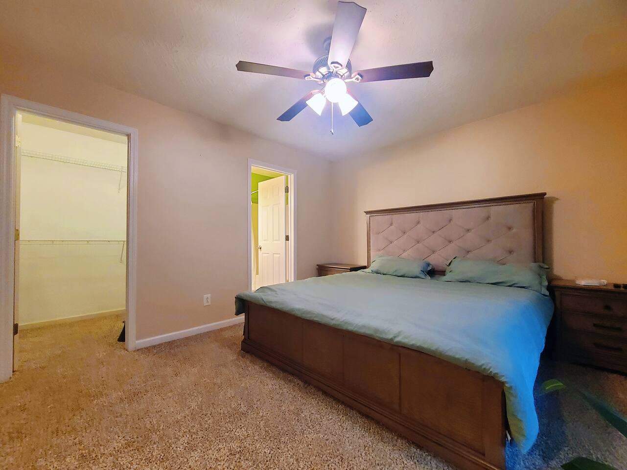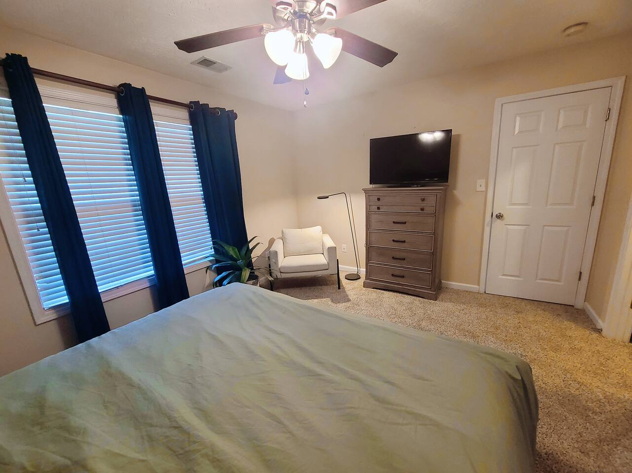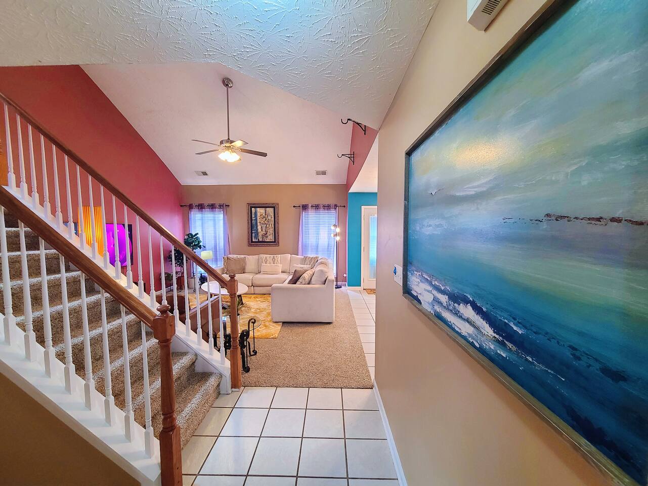 🛏 Bedrooms & Layout * 4 Beds Total: 1 King, 3 Queen * The primary bedroom is located downstairs and features a private en-suite bathroom for added convenience. * A half bath is also available on the first floor for guests and shared use. * Upstairs, you'll find three additional bedrooms, each with walk-in closets: * Two of the upstairs bedrooms offer complete privacy with doors. * The third upstairs room is open (no door) and includes a dedicated workstation and a sofa bed, ideal for remote work or additional lounging space. * There is one full bathroom upstairs shared among the three bedrooms. 🏥 Proximity to Medical Centers