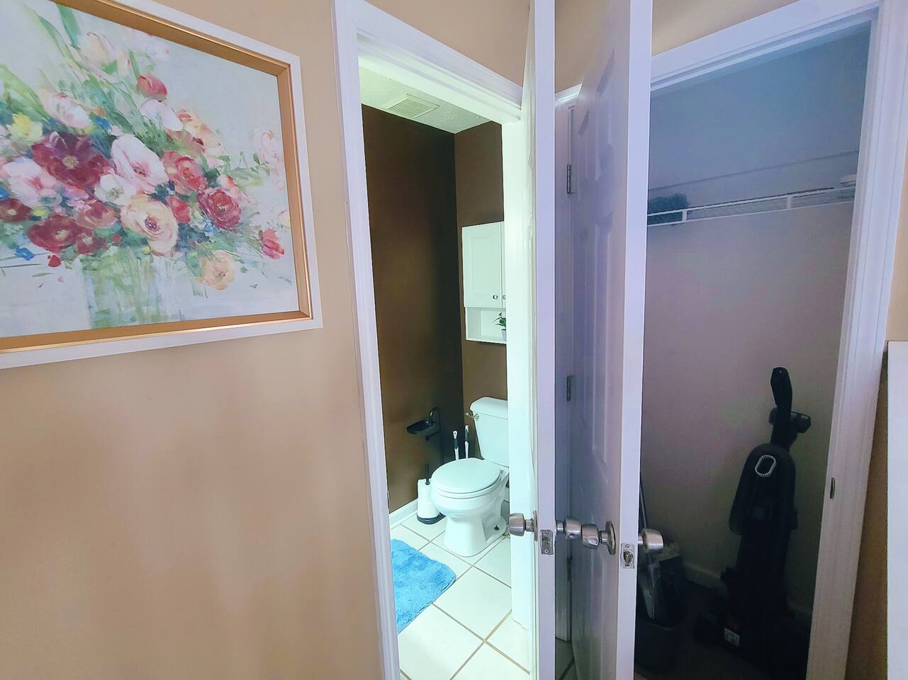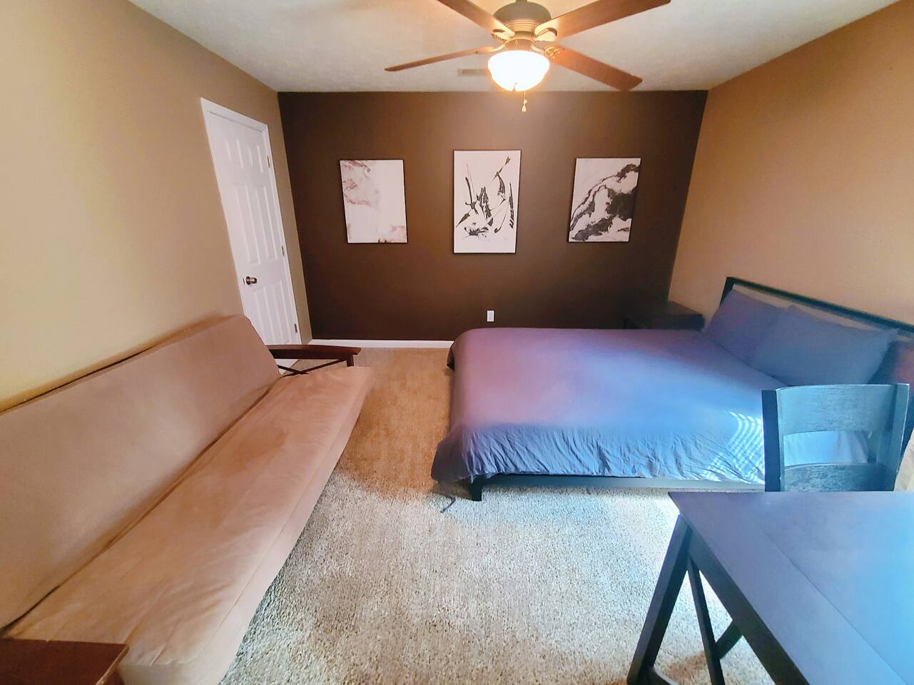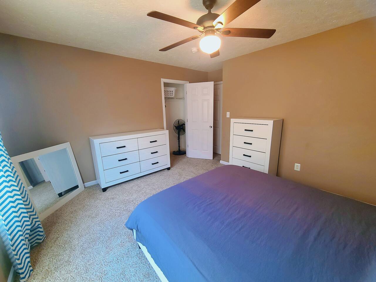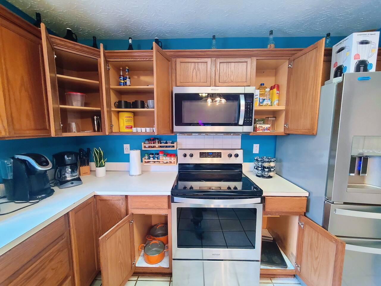 🛏 Bedrooms & Layout * 4 Beds Total: 1 King, 3 Queen * The primary bedroom is located downstairs and features a private en-suite bathroom for added convenience. * A half bath is also available on the first floor for guests and shared use. * Upstairs, you'll find three additional bedrooms, each with walk-in closets: * Two of the upstairs bedrooms offer complete privacy with doors. * The third upstairs room is open (no door) and includes a dedicated workstation and a sofa bed, ideal for remote work or additional lounging space. * There is one full bathroom upstairs shared among the three bedrooms. 🏥 Proximity to Medical Centers